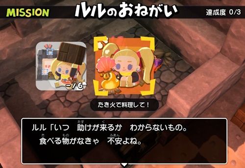 島に流れ着いてからも態度の悪さは変わってませんが、とりあえず話を聞くとミッションという物がでました。前作では独立したクエストを1個ずつこなしていく感じでしたが、今作はミッションという物があるようですね。この「ルルのおねがい」は全部で3個のクエストがまとまって出ます。