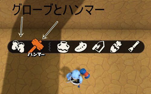 そしてここで一度選択した道具は、その後は「Aボタンで簡単に切り替え」だけで選択する事ができます。別のビルダー道具に変えたい時にはまた「Aボタン長押し」で上の画面を出して選び直してください。