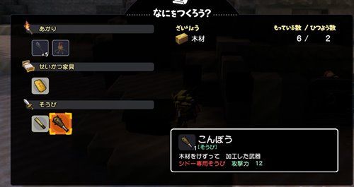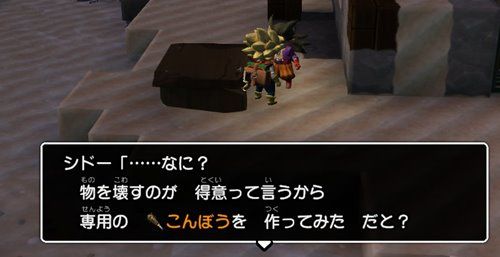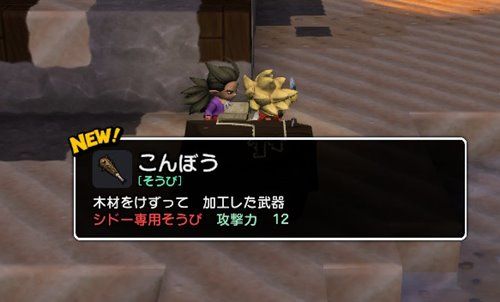 まあシドー君の素性はさておき、シドー君は自分で何も作れなかったので、かわりに主人公に何か作って欲しいと言ってきます。そしてひらめいたのは「こんぼう」です。