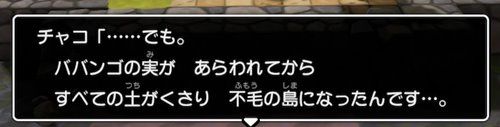 前回チャコちゃんに誘導される所まで書きましたが、今回無事に「大農園」に着きました。「大農園」と言われますが、ここがそうなんでしょうか?シドー君も「廃墟」とか呼んでました。しかしチャコちゃんが言うには「ここをこれから大農園にする」らしいです。ここに大農園を復活させ、モンゾーラに緑を取り戻したいと言われます。