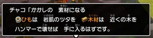 さてストーリーの方は「かかし」を作るんですが、材料は「ひも」「木材」「枯れ草」です。チャコちゃんの説明は上のSSのようになっています。慣れてくればこれでわかるんですが、最初はちょっとわかりにくいかもなので、一応説明しておきます。
