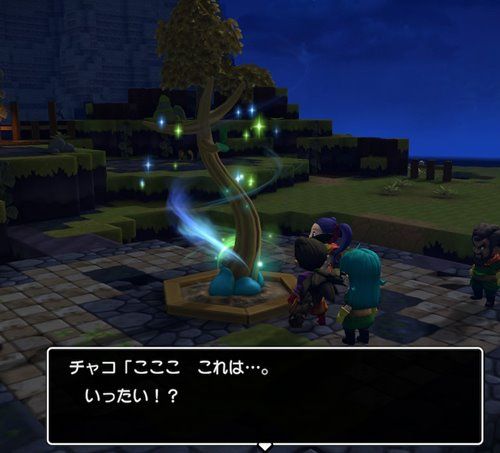 その後木のまわりで会話が進んでいくんですが、途中で主人公とシドー君が「破壊神」の事や「ハーゴン教団」について何も知らない事にチャコちゃんが気がつきます。
