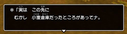 話しかけると「この先に小麦の倉庫だった場所がある」事を教えてくれます。このおおねずみさんはそこで小麦を食べていたのに、最近魔物が住み着いてしまって食べられなくなってしまったみたいですね。小麦のタネはそこに行けばありそうです。