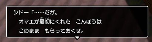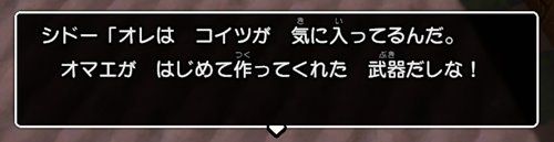 主人公が初めてシドー君に作ってあげた武器なため、シドー君は「こんぼう」がお気に入りなんですね。そのため新しい装備がきても「こんぼう」だけは持ったままになります。このあたりは後の方でストーリーに関係していくので、覚えておいた方がいいかも知れません。
