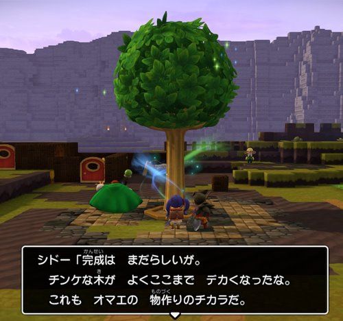 襲撃イベントから一夜明けて、朝になっています。大樹の前で主人公とシドー君が話し合っています。チンケな木とか言ってますが、シドー君は物作りの力を認めてくれている様子です。